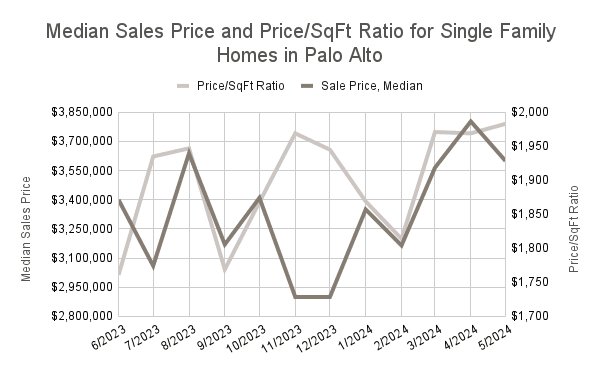 The median sale price in Palo Alto is an impressive $3,600,000 for single-family homes and $1,400,000 for townhouses and condos, showcasing the ongoing demand and high-value nature of properties in the area. These significant median prices underscore the city’s status as a desirable residential destination, where the combination of economic opportunities, excellent schools, and vibrant community life creates a strong market. As we move further into 2024, these trends are expected to persist, reinforcing Palo Alto’s position as one of the most sought-after real estate markets in the region. The continued influx of tech professionals and families, coupled with the city’s robust economic base, will likely sustain high property values and competitive sales across all types of residential real estate.