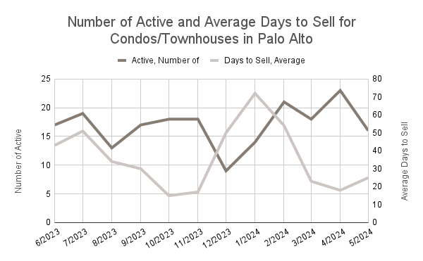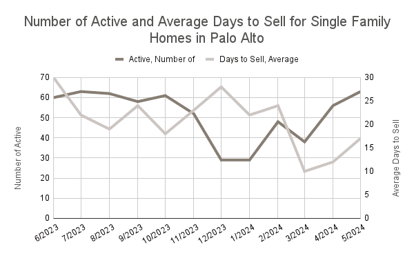 Palo Alto, a renowned center for innovation and home to Stanford University, continues to attract homebuyers seeking proximity to top-tier educational and professional opportunities. As of May 2024, Palo Alto's real estate market is highly competitive, with 63 active listings for single-family homes and 16 active listings for townhouses and condos. Homes are selling rapidly, with single-family homes averaging 17 days on the market and townhouses/condos averaging 25 days. This rapid turnover reflects the strong buyer demand in the area, driven by the city’s strategic location and the high quality of life it offers. The swift pace of sales indicates that buyers must act quickly to secure properties, contributing to the competitive nature of the market.